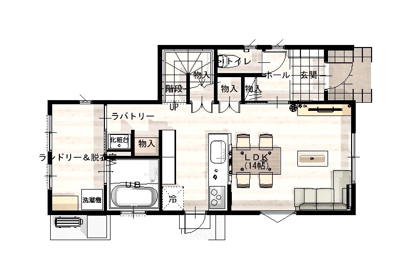 ランドリースペースを設け、日々の家事を快適にする工夫も取り入れています。