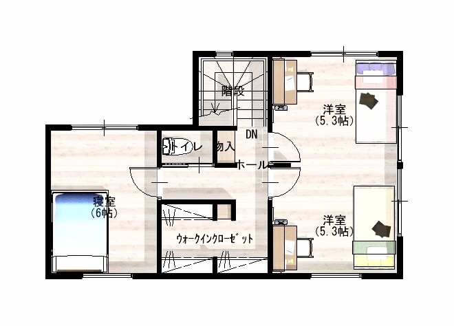 間取りは 2LDK ですが、2階の洋室は将来間仕切り、それぞれ利用でき 3LDK になります。